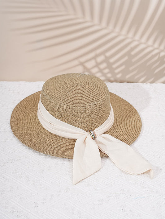 1 Peça Chapéu De Palha Feminino Para Férias Na Praia Com Fivela Brilhante, Aba Larga E Design Respirável Boho Estilo Y2k