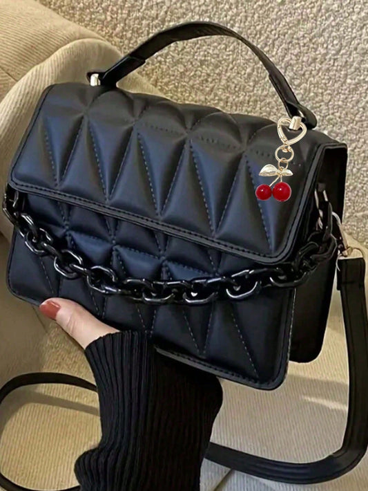 2024 New Fashion One Shoulder Diagonal Package, Simple Diamond Grid Popular Handbag With Detachable Strap