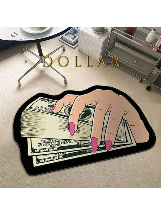 1pc Cartoon Ins Style Dollar Bill Pattern Carpet, Interesting & Cute Plush Velvet Backed Asymmetrical Shaped Area Rug, Anti-Slip Doormat For Living Room, Bedroom, Kitchen, Bathroom, Laundry Room, Hallway, Entryway, Game Room, All Season Home Decor Rugs D