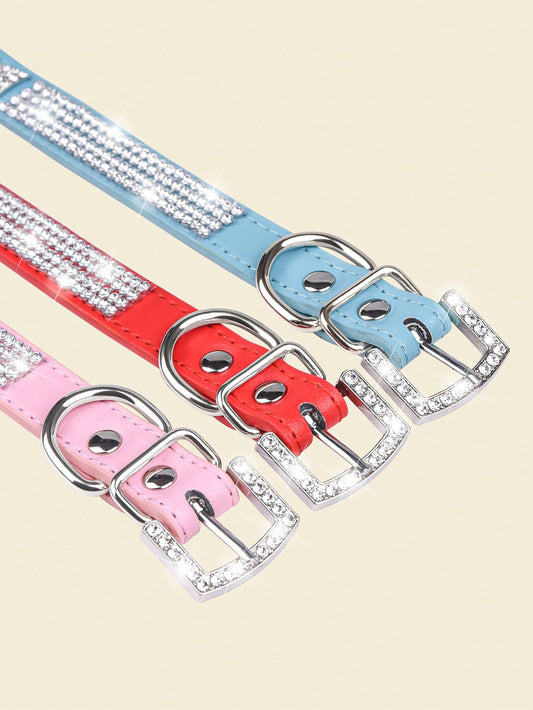 1pc Shiny Rhinestone Collar Leather Dog Collar Crystal Diamond Pet Collar, For Small And Medium Dogs