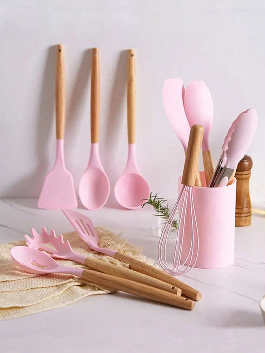 12 Stück Silikon Küchenutensilien Set, Kochzubehör Set, antihaftbeschichtetes Küchengeschirr mit Kellen, Spatel und mehr, Notwendigkeiten für Apartment & Studentenwohnheim, Rückkehr in die Küche, Weihnachtsgeschenk