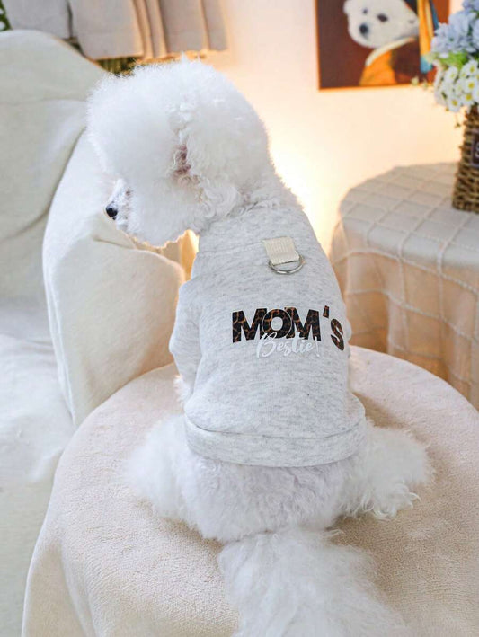 1pc Pet Clothes Dog Cat Apparel Small Puppy Autumn/Winter Hoodie - "Mom's Best Friend" Light Grey Zip-Up Hoodie