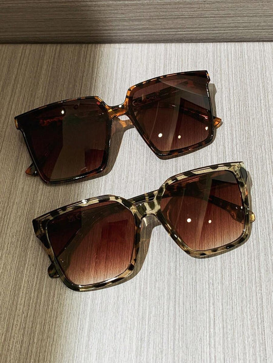 2 Peças Óculos de Sol Quadrados Grandes de Plástico com Estampa de Onça Retrô, Óculos de Moda Estilo Boêmio, Design Clássico para Uso Casual em Viagens, Praia e Dirigir, Proteção UV
