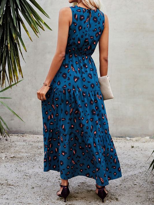LUNE Bainha de Ruffle Leopardo Boho Vestido