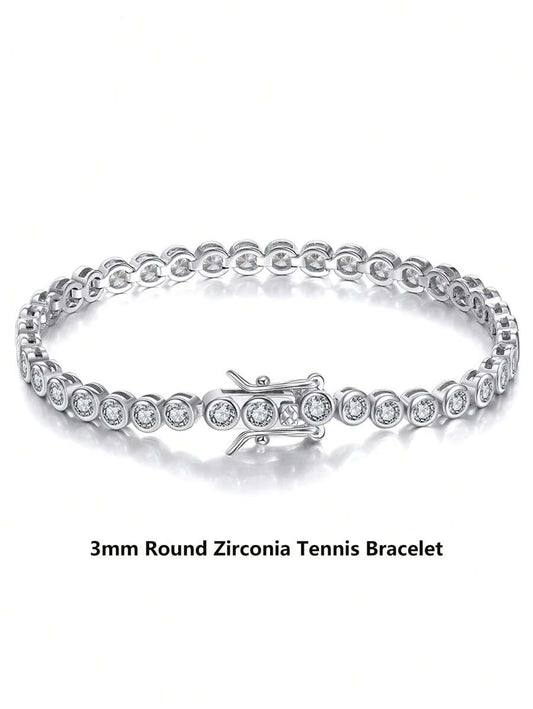 ORSA JEWELS 1 PC Genuine 925 Sterling Silver Round Stone Tennis Chain Bracelet 4A Grade Cubic Zirconia Women Hand Chain Luxury Hand Jewelry For Birthday Party Christmas Gift