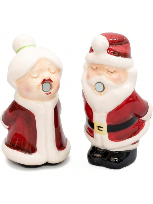 Santa And Mrs Claus Kissing Ceramic Salt And Pepper Shaker Set
