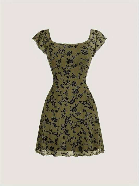 Vacation Style Short Sleeve A-Line Dress - Floral Print Lace Trim, Women's Clothing for Spring & Summer