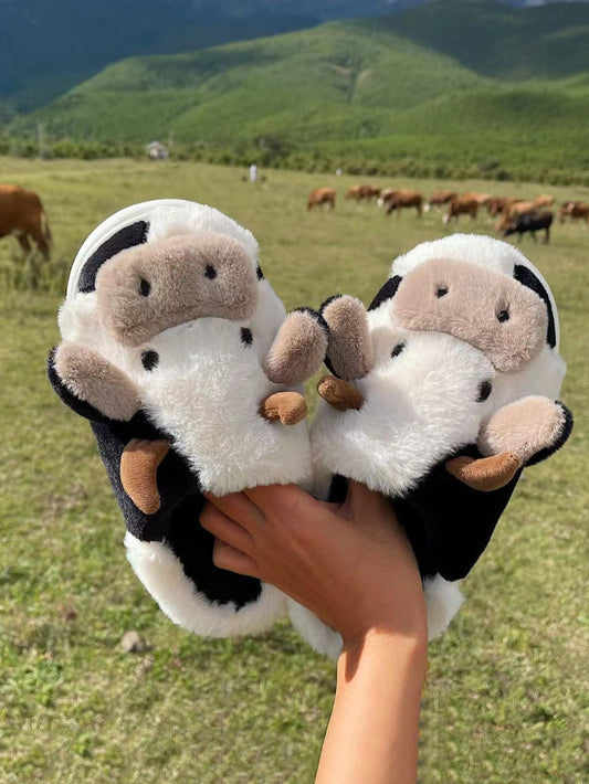 Cute Cartoon Cow Print Indoor Warm Slippers For Women