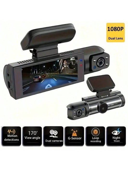 Dual Lens Dash Cam With Night Vision, Dual 1080P Front And Embedded Cameras, Wide Angle Car DVR, 3.16" IPS Screen, 24-Hour Motion Sensor Parking Mode, 32GB Memory Card Loop Recording