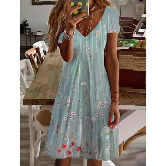 Women's Casual 3D Floral Printed V-neck Casual Dress