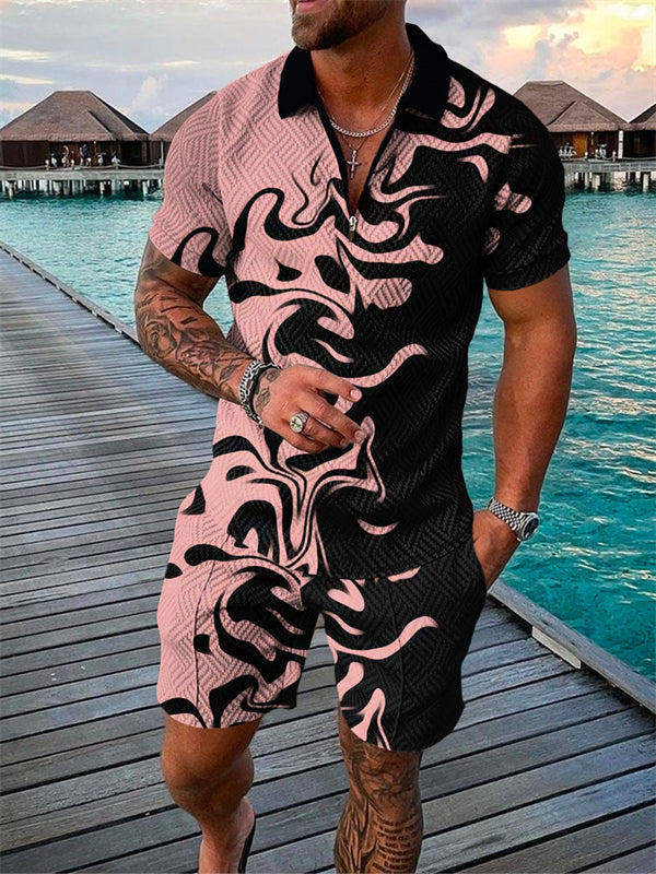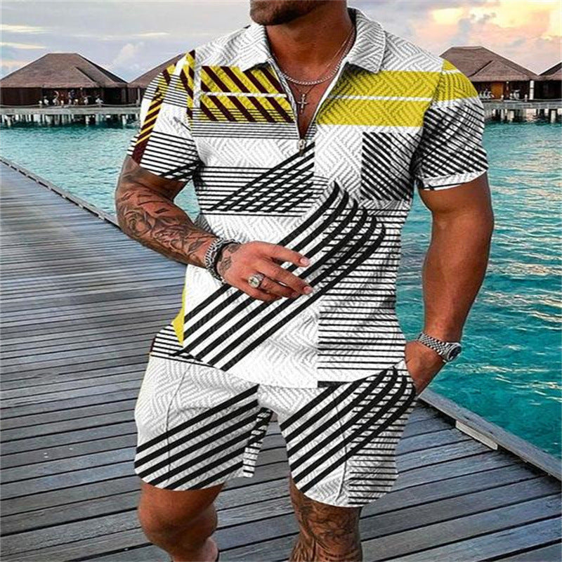 Zipper Polo Shirt Suit Men's Casual 3D